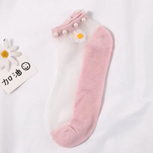 1Pair Elastic Socks Crystal Glass Silk Ultrathin Lace Literary Sale 1 Pair Summer Transparent Jacquard Short Socks