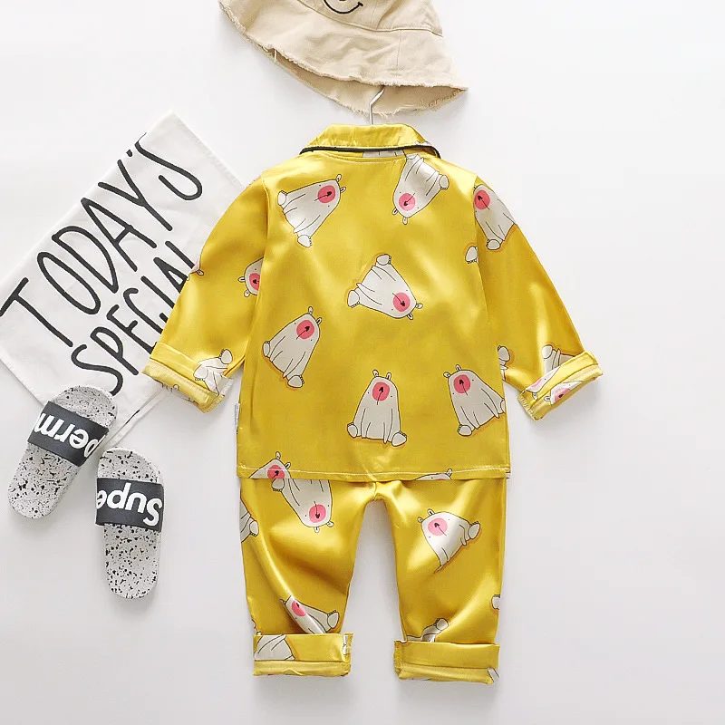 Children's Pajamas Set Baby Suits Kids Clothes Toddler Boys Girls Soft Ice Silk Tops Pants Set Home Wear Kids Pyjamas Nightgown
